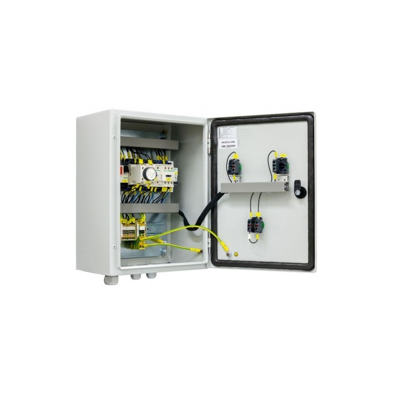 Assembled surface mounted DOL motor control panel with Soft Starter, for 400VAC 4 kW motor